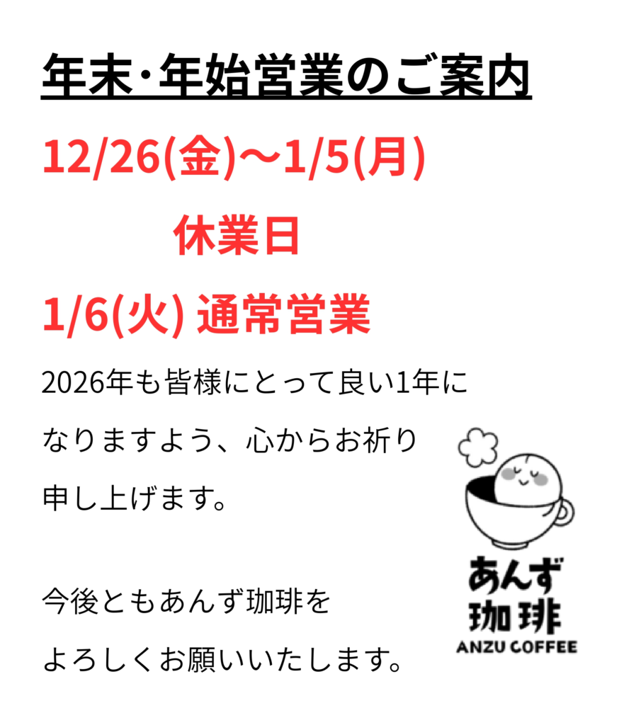 日頃よりあんず珈琲をご利用ありがとうございます。